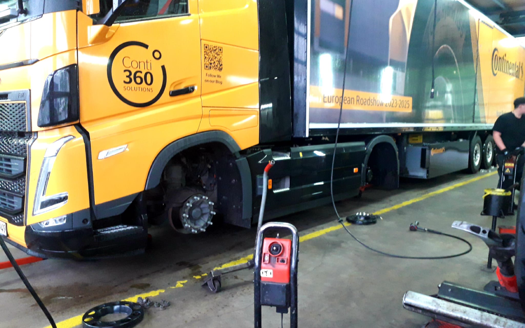 Tuesday, the first day of the event at BestDrive in Hunzenschwil, 40 kilometers west of Zurich, is all about work: installing sensors, washing the truck and getting the rims and tires in shape – all this has to be done. Then there is a test run to see if everything works with the electricity and an internal training session. On day two in Hunzenschwil, another event is held for BestDrive employees and customers. BestDrive is Continental’s retail partner and workshop chain, which is active in many European countries.