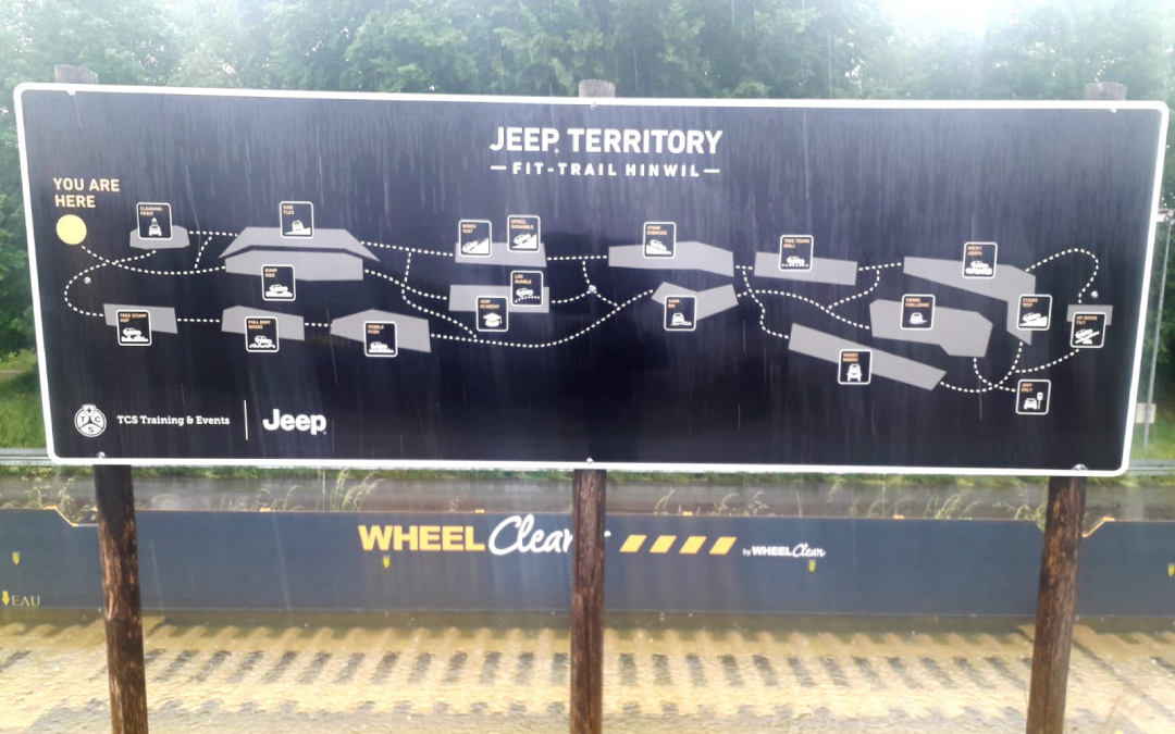 On Thursday and Friday, two customer events are scheduled at the Betzholz driving center of the Touring Club Switzerland in Hinwil. Hinwil is located to the south-east of Zurich, so the area is quite hilly. And the driving center of Switzerland’s largest automobile club is a great location, as the test track is the largest road safety center in Switzerland and one of the most modern in Europe. Our event is also divided into two stations: a trailer station and a course. A real off-road course is offered on the test track, which we can drive on with various cars. I also rode the track on inline skates – a cool experience!