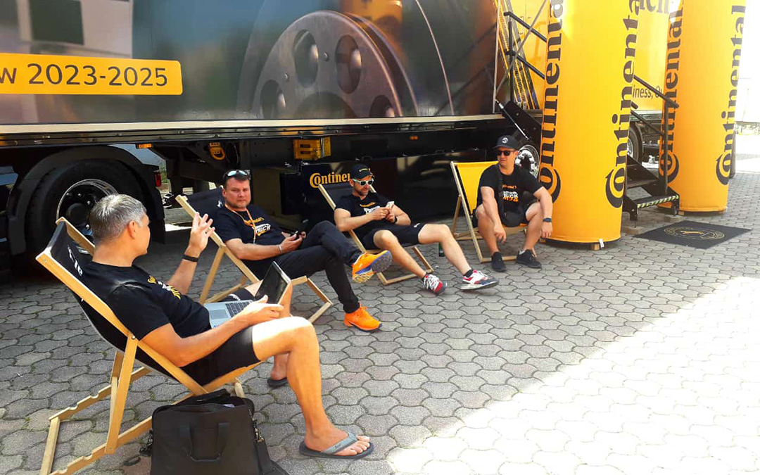 After the event, we quickly put everything away, then I go to the cool hotel and watch the Germany game against Hungary. And before you ask: we of course uncovered the red car under the tent, but the owner didn’t show his face the whole time. The car has probably been in the parking lot for a while, because it has winter tires – from Conti, of course.