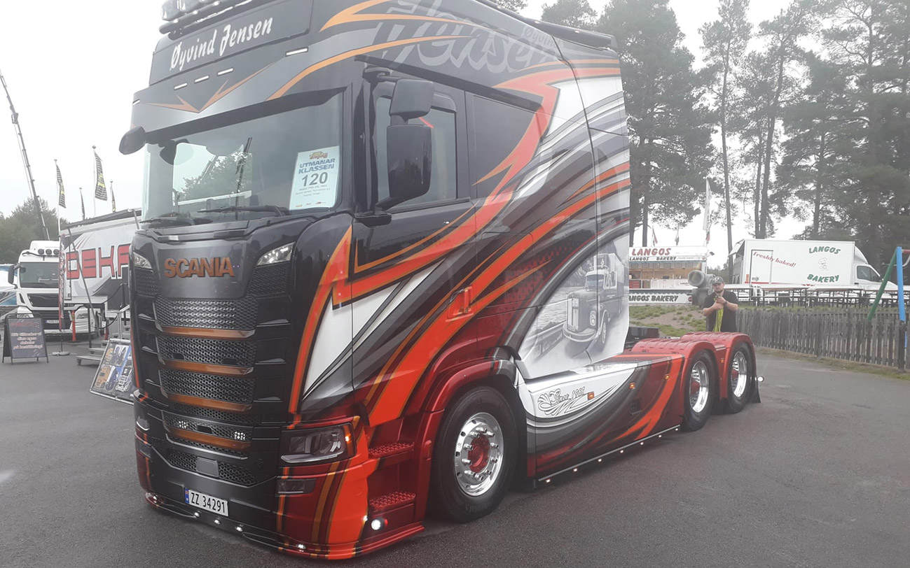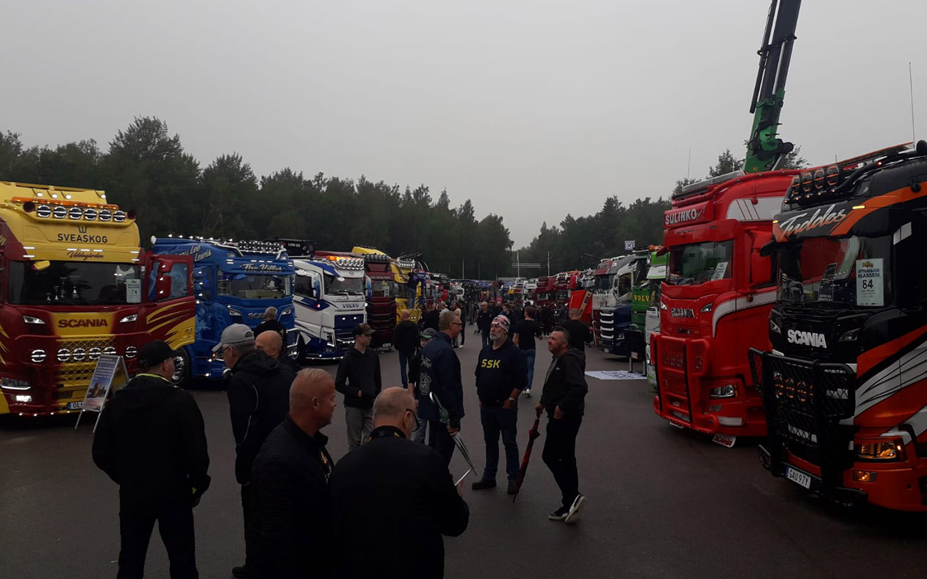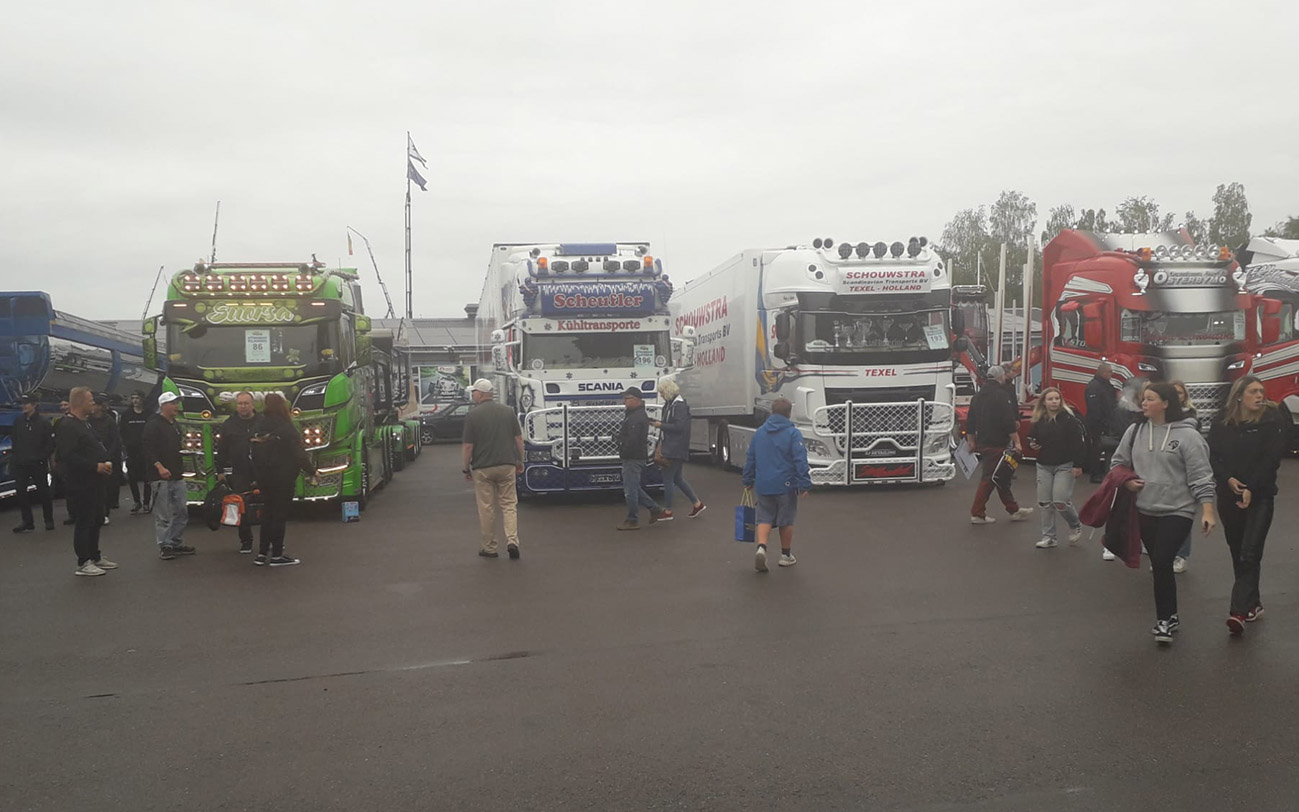 Hello everyone and nice of you to stop by our blog (again). What a weekend! About this blog post I write not only reason “Mantorp, Oh man!” because it was a nice event at the race track. I was also thinking “Oh man!” a lot because the weather was so lousy here in Sweden. But despite the rain and the really cool temperatures, about 15,000 visitors came to the Trailer Trucking Festival, according to the organizers. In addition, there are about 400 great trucks from 14 European countries to see. Many have great (and expensive) special paint finishes in airbrush technique. So there is already a similar feeling like at the ADAC Truck Grand-Prix at the Nürburgring in Germany. Only smaller. And quieter – the drivers don’t honk as often and celebrate more discreetly. Oh yes – and more wet. And colder.