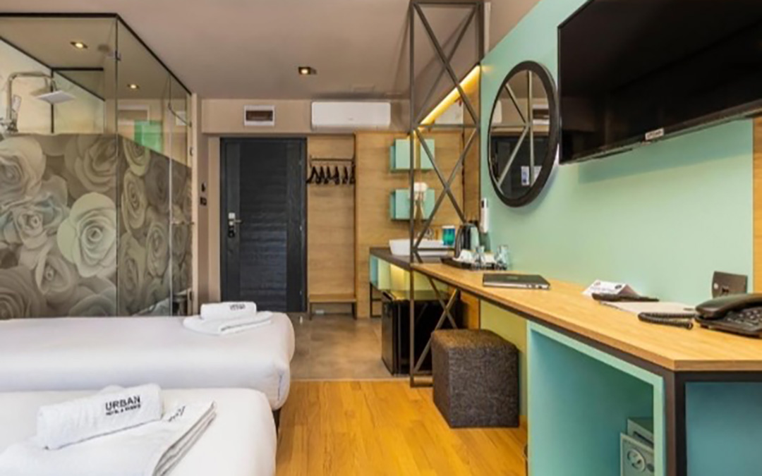 After a long day, I’m looking forward to the hotel. It’s really smart, with a wellness area and all the trimmings. Interestingly, my colleagues tell me that everything in the hotel is pink. But I, of all people, have a green room. Two beds, plenty of space, everything is there.
