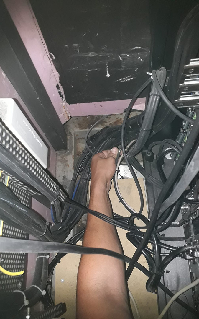 But the next stress awaits me at the venue. The event is about to start and the first problem arises during set-up: the monitor cable has become entangled in the server tower and damaged it. I have no idea where the problem is and the screen for the presentation remains black. Many phone calls and a lot of tangled cables ensue until I finally find the right cable, get a replacement cable and get everything up and running.