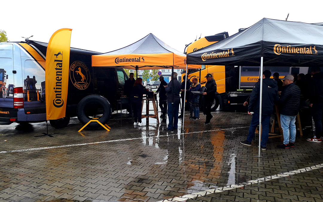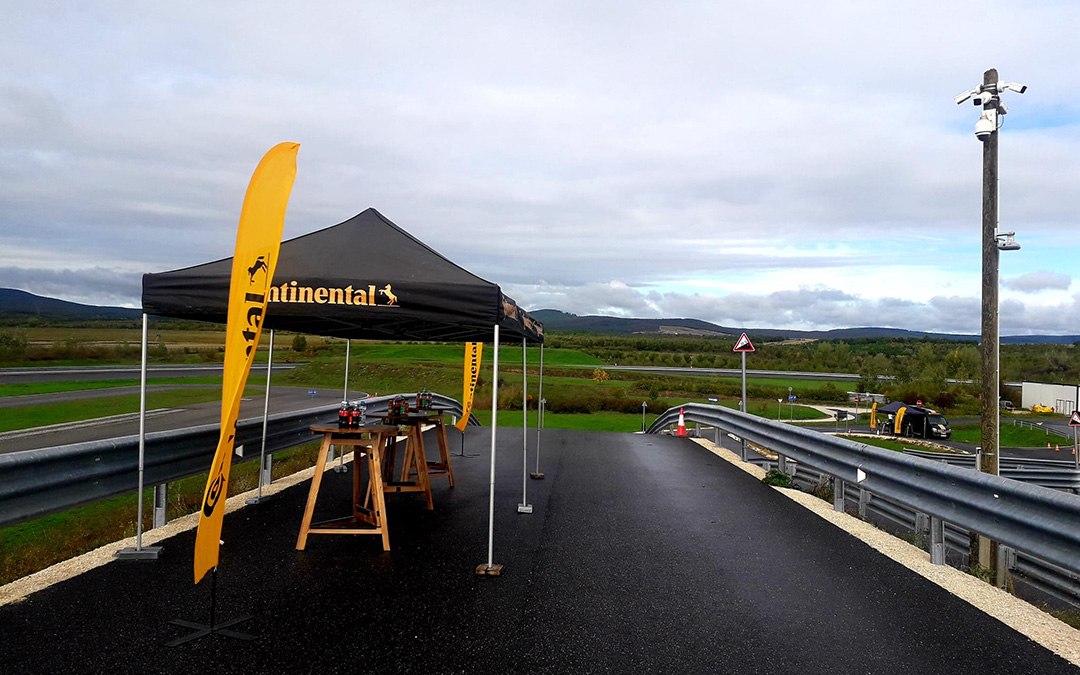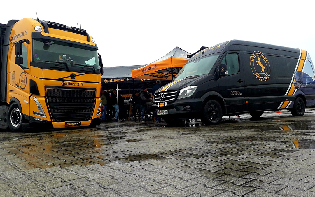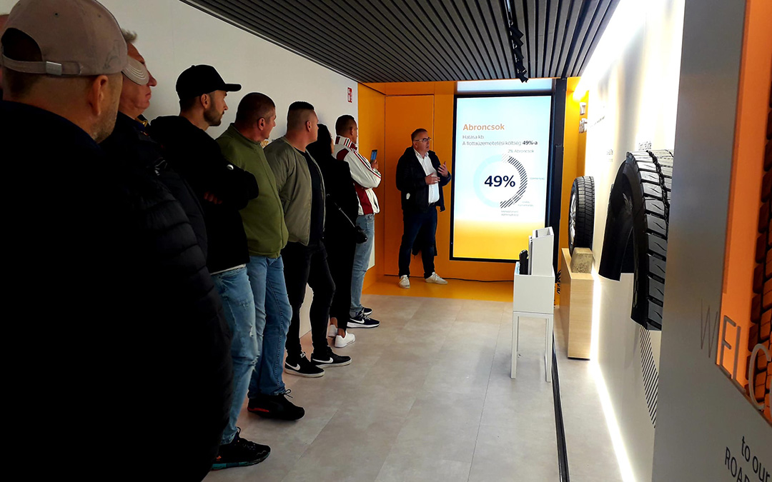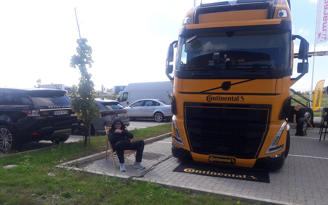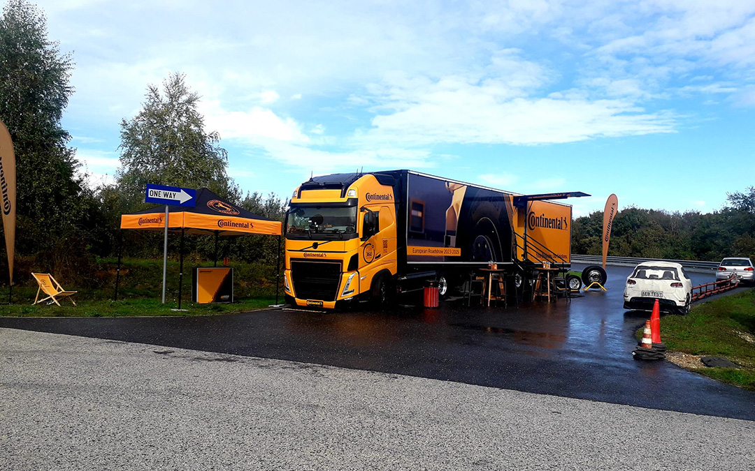 After the event in Budapest at the tire dealer marso, I continue on to Veszprém, where I have two venues. First I go to the plant, where I and a colleague give an internal presentation. In six hours, we guide 10 groups through our program. Then we go to the Conti test track, about 16 kilometers away.